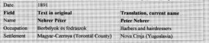 1891-ben Magyarcsernyén egy átlagos háztartásban nyolc-tíz fő élt. Ma, talán hárman. Családom kutatása kapcsán és a szájhagyományok szerint is, ha valaki Magyarcsernyén egy kavicsot elhajított, az biztos hogy egy Nehrer-t talált el. Ez a mondás egyáltalán nem alaptalan. Bizonyságképpen közreadom ezt az 1891-ben készült jegyzéket. Dédnagyapám és testvérei. Mindegyiknek volt családja, öt-hat gyerekkel.