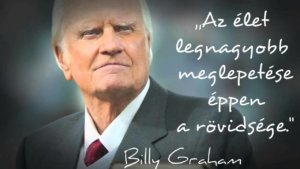 „Egy nap majd azt olvassák vagy hallják, hogy Billy Graham halott. Egy szót se higgyenek belőle. Sokkal elevenebb leszek, mint most vagyok. Csak a lakcímemet változtattam meg. Isten jelenlétébe léptem.” (Dr. Billy Graham) ( 1918 november 7.- 2018. február 21.) amerikai evangélista. Óriási házi és szabadtéri összejöveteleket tartott; prédikációit közvetítették a rádióban és a televízióban. Graham személyesen ismert 11 elnököt, Trumantől kezdve egészen George W. Bushig. Közülük tíznek barátja és hétnek közeli bizalmasa volt. Különösen közeli kapcsolatban volt Dwight David Eisenhowerrel, Lyndon Johnsonnal, akit Graham legközelebbi barátjának tartottak, Richard Nixonnal, Reagenékkel és a Bush családdal is. 1955-ben meghívta Martin Luther Kinget, hogy együtt hirdessenek az ébredésről New York városában, és letette érte az óvadékot, amikor az 1960-as években letartóztatták. Több helyre jutott el, mint kora bármelyik más prédikátora. Erről a képről és az idézetről jutott eszembe néhány évvel ezelőtt ez alábbi pár gondolat, ami aztán egy kötetben is helyet kapott.